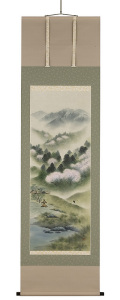 商品名:陽光山水 【直筆作品】 作家名:倉地邦彦 桜が色鮮やかで、春のすがすがしい情景が醸し出されている山水画です。 春の床の間には最適な一幅です。