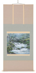 商品名:奥入瀬 尺八横 野川 観【直筆作品】 作家名:野川 観 涼しい渓流の様子をあらわしています。 涼を求める夏にぴったりな一幅です。
