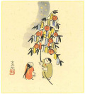 七夕は、竹の葉に「天の川」などと書いた短冊などを結んで星に字の上達や技芸の上達を祈る行事です。短冊に古歌や格言を書いて笹に吊るすと、習字が上達すると言い伝えられています。 |